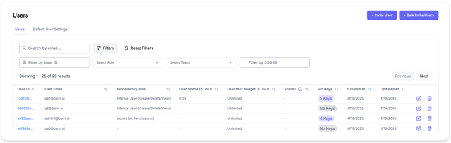 • Filter usage analytics, spend logs, and activity metrics by customer ID